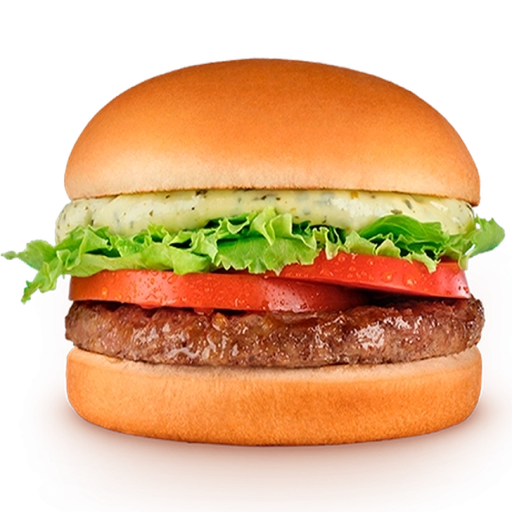 Pão, file de peito de frango, alface, tomate, milho e batata.